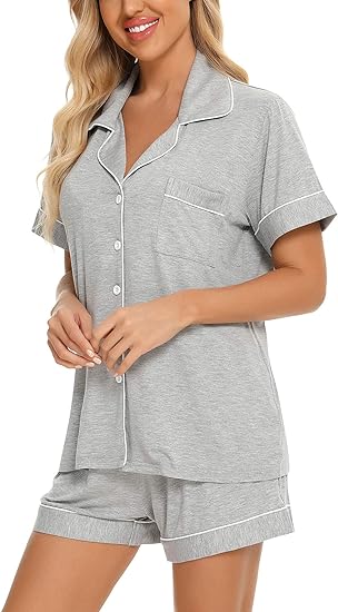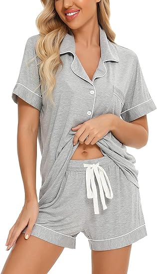 This women's pajama set is made of skin-friendly and cozy viscose fabric, which is soft, lightweight, breathable, stretchy, and comfortable, keeping you easeful while sleeping at night. That’s ultra-smooth against the skin so you can enjoy superior comfort.