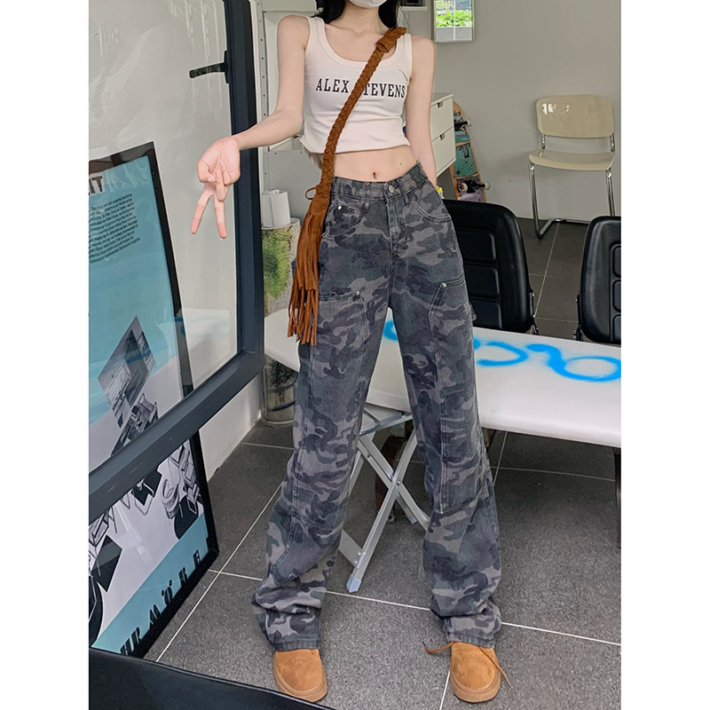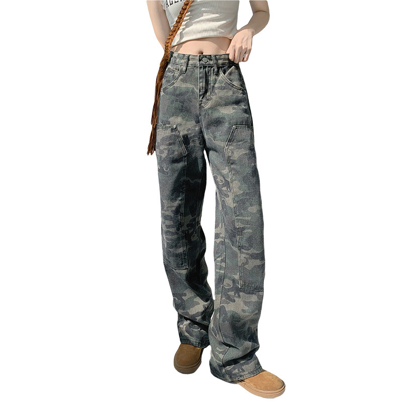 Design: Camo print loose cargo pants women's jeans come with flap pockets, zipper fly and button closure, y2k 90s jeans loose style makes you feel more comfortable.