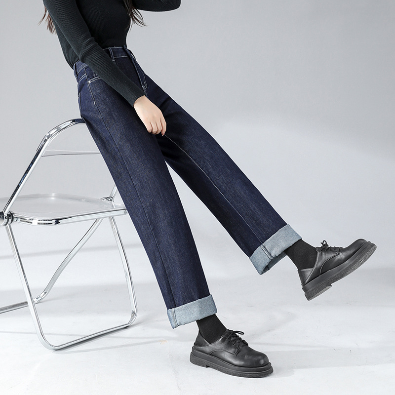 Loose-fitting jeans flatter all leg types and provide plenty of room for movement and breathability. Versatile and practical, it can be matched with any wardrobe, and it can be matched with any style of loose denim pants for an easier look.