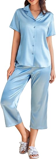 The pajamas is made of soft cozy satin, the fabric is so soft to wear, it makes you comfortable in the lounge and sleeping time. The pajamas material supports machine wash and hand wash.