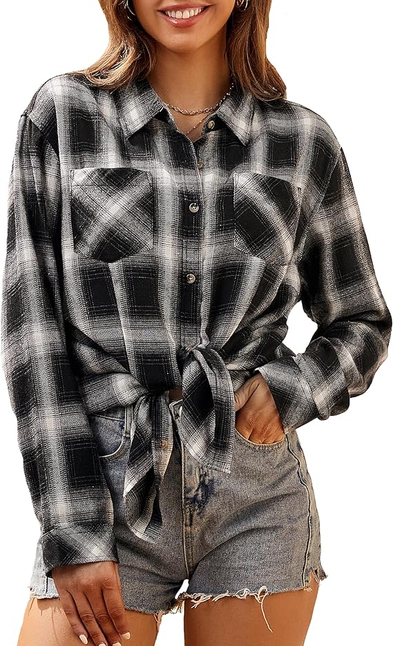 • Women's Buffalo Plaid Flannel Shirt Long Sleeve Collar Button-Down Shirt Top